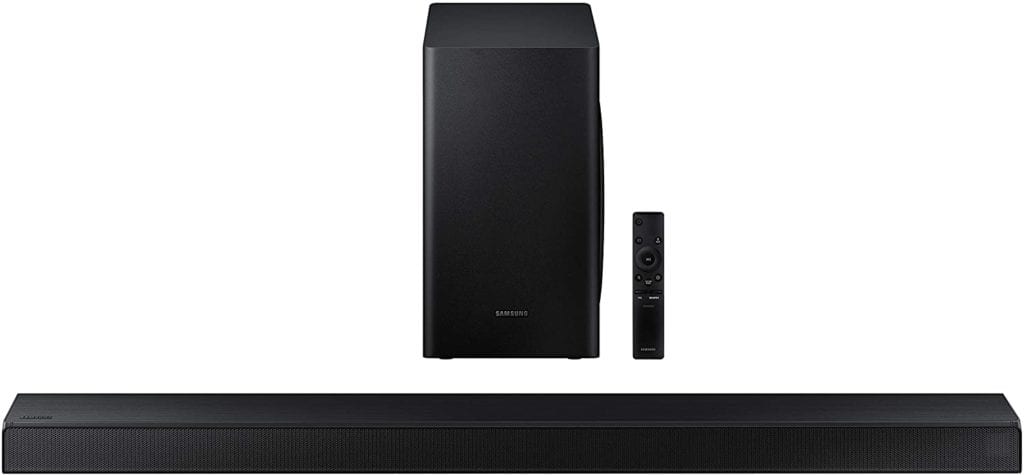 With its eARC input, this 36-inch soundbar can deliver the highest quality uncompressed audio formats that TVs currently support. It also comes with a 6-inch wireless subwoofer that you can place anywhere for deep bass.